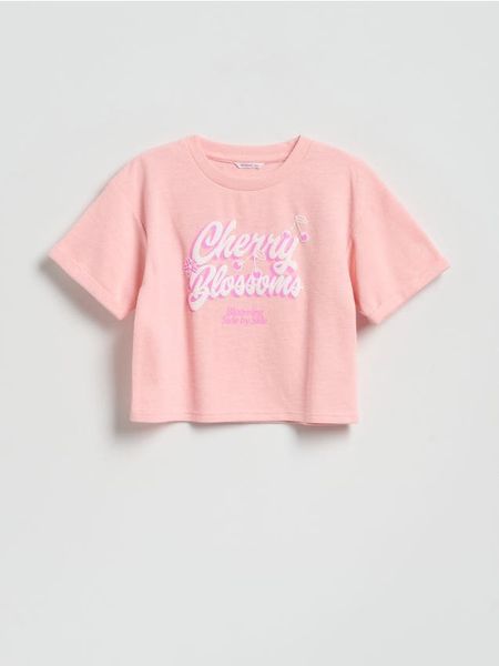 Krótki t-shirt z nadrukiem – brzoskwiniowy