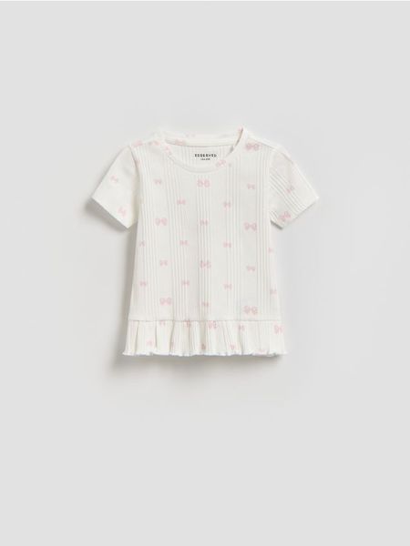 T-shirt z falbanką – złamana biel