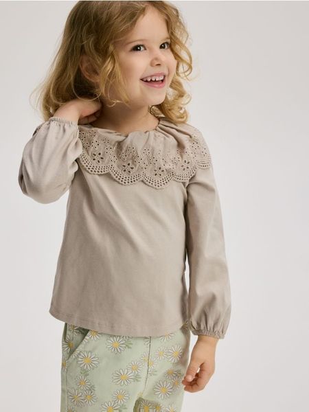 Koszulka z ozdobnym kołnierzem – beżowy