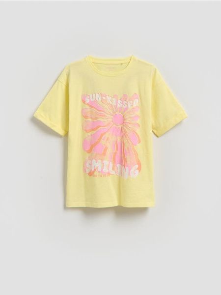 Bawełniany t-shirt z nadrukiem – jasnożółty