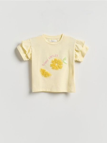 Bawełniany t-shirt z aplikacją 3d – żółty