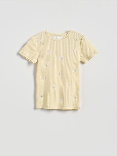 Bawełniany t-shirt z haftem – jasnożółty
