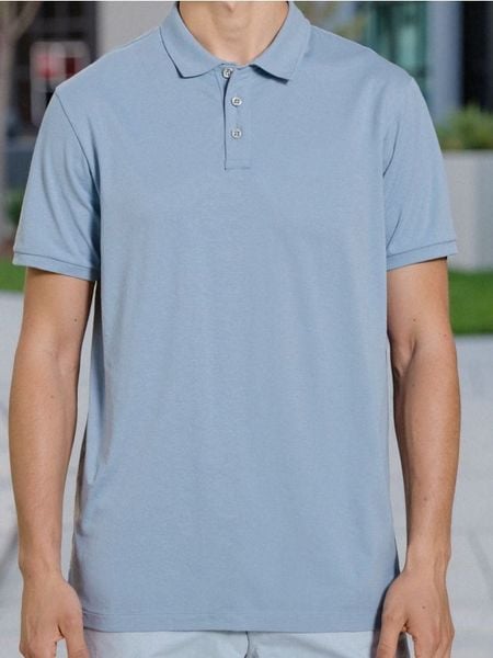 Polo koszulka z bawełnianej dzianiny pique – błękitna V2 - Rozmiar: S