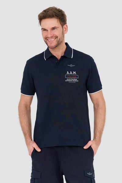AERONAUTICA MILITARE Granatowa męska koszulka polo Piqué, Rozmiar L