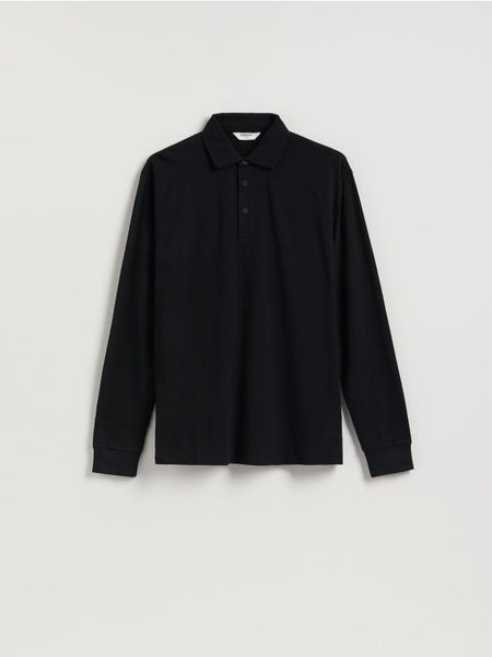 Polo koszulka z długim rękawem zapinana na eleganckie, brandowane guziki – czarna V1