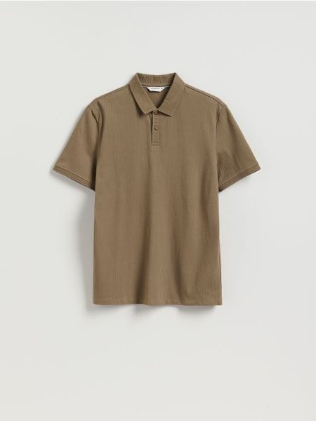 Koszulka polo regular ze strukturalnej dzianiny – brązowy