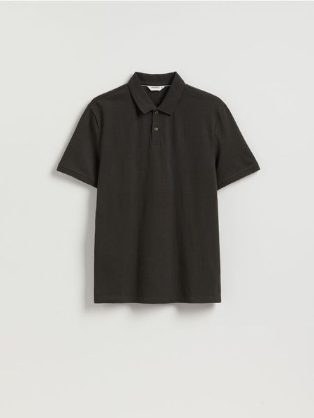Koszulka polo regular ze strukturalnej dzianiny – ciemnoszary