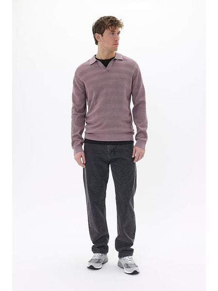 Melanżowa koszulka męska polo z kołnierzykiem w paski – różowa V2 - Rozmiar: L
