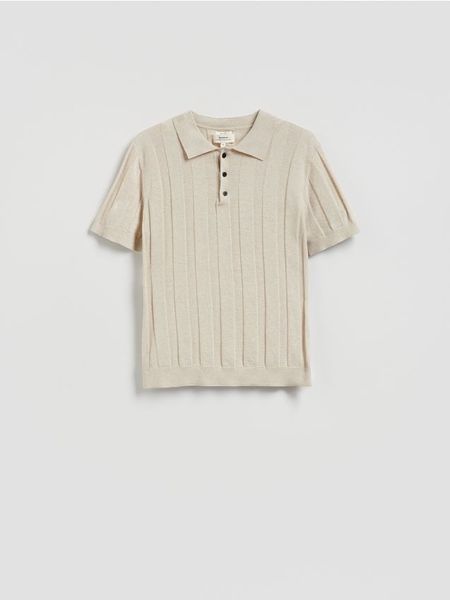 Koszulka polo z lnem – beżowy