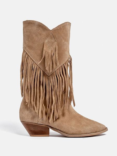– zapięcie: bez- noski: okrągłe- noski i zapiętki: wzmocnione- detale: frędzle- skórzana wkładka: tak- forma obcasa: kubański- podeszwa: antypoślizgowa