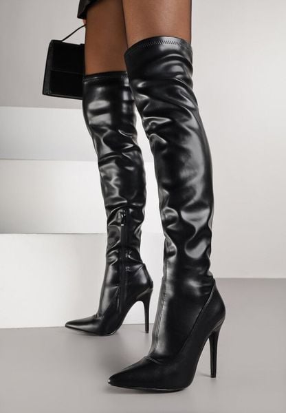 Czarne Dopasowane Kozaki Vices za Kolano na Szpilce Tedvira