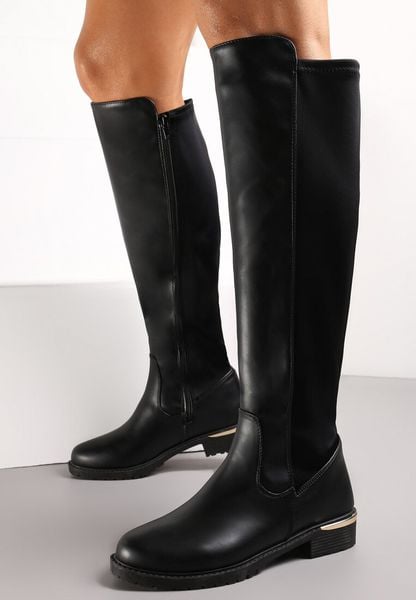 Czarne Kozaki Przed Kolano z Elastyczną Wstawką Miorcca