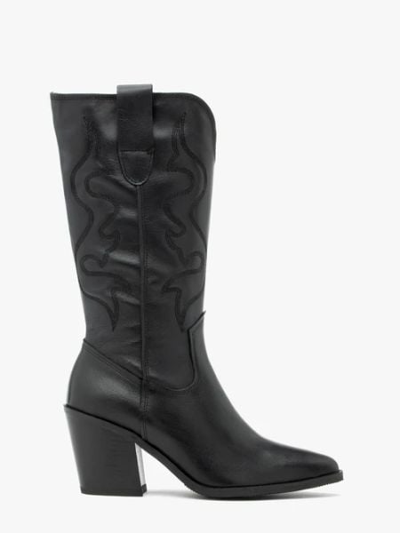 Czarne kozaki kowbojki z haftowaną cholewką