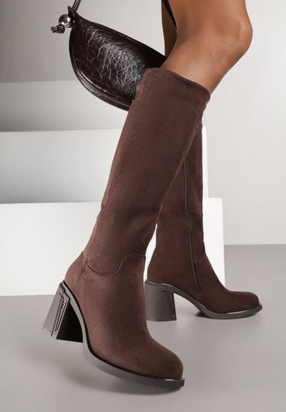 Ciemnobrązowe Kozaki na Słupku w Stylu Muszkieterek Cediara