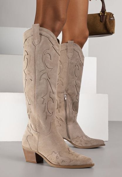 Ciemnobeżowe Kozaki Kowbojki na Stożku w Klasycznym Stylu Nalinda