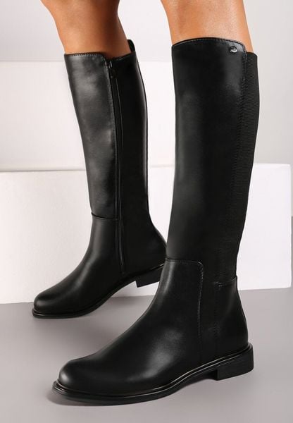 Czarne Kozaki na Płaskiej Podeszwie w Stylu Oficerek z Gumką Ansista