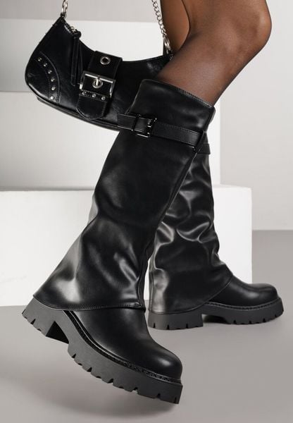 Czarne Marszczone Kozaki VICES z Wywiniętą Cholewką z Klamerką Talles