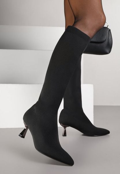 Czarne Kozaki Vices na Obcasie Kaczuszce z Elastyczną Cholewką Asenella