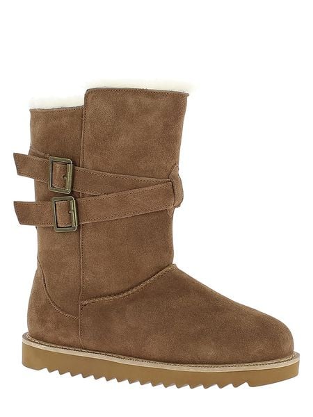 – skóra welurowa – wodoszczelny materiał wierzchni- zapięcie: bez- noski: zaokrąglone- wyściółka: ogrzewająca wełna- detale: dekoracyjne sprzączki- dookoła gumowanie- podeszwa: antypoślizgowa