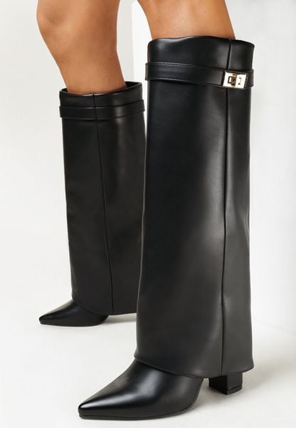 Czarne Kozaki ze Szpiczastym Noskiem i Wywiniętą Cholewką Quirina