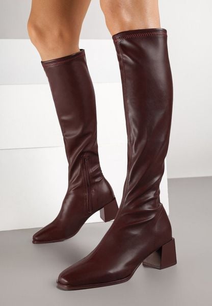 Bordowe Kozaki na Obcasie z Dopasowaną Cholewką Fagwona