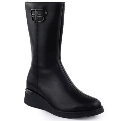 Skórzane kozaki krótkie na koturnie czarne T.Sokolski Z25-43
