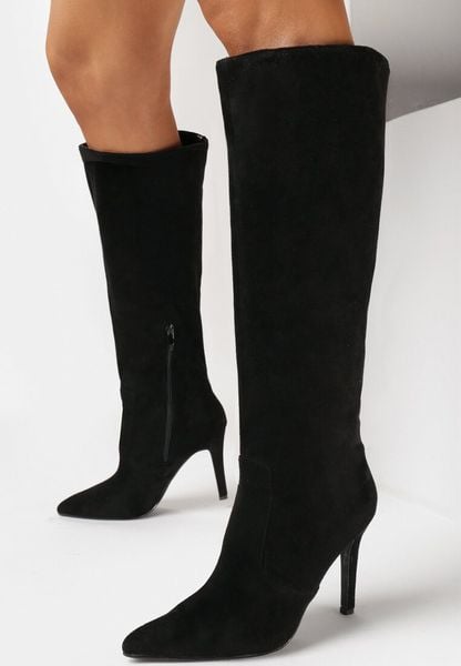 Czarne Kozaki na Szpilce ze Szpiczastym Noskiem Velvita