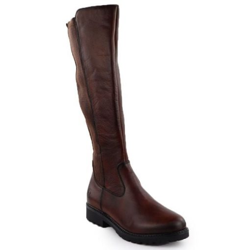 Skórzane kozaki damskie z elastyczną cholewką brązowe Remonte Rieker R6594-24
