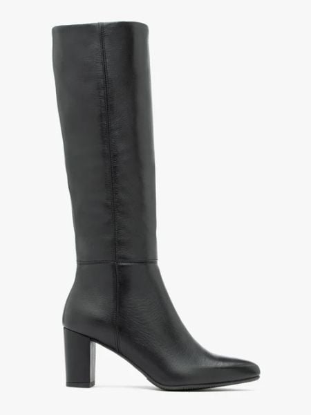 Czarne kozaki ze skóry licowej z wąską cholewką