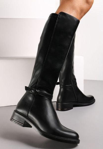 Czarne Kozaki na Płaskim Obcasie Muszkieterki z Klamrą Callela