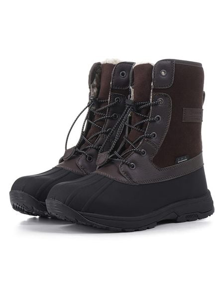 – wodoszczelny materiał wierzchni- zapięcie: system szybkiego zapinania- praktyczna szlufka ułatwiająca zakładanie- noski: zaokrąglone- noski i zapiętki: wzmocnione- wyściółka: ciepła- podeszwa: antypoślizgowa