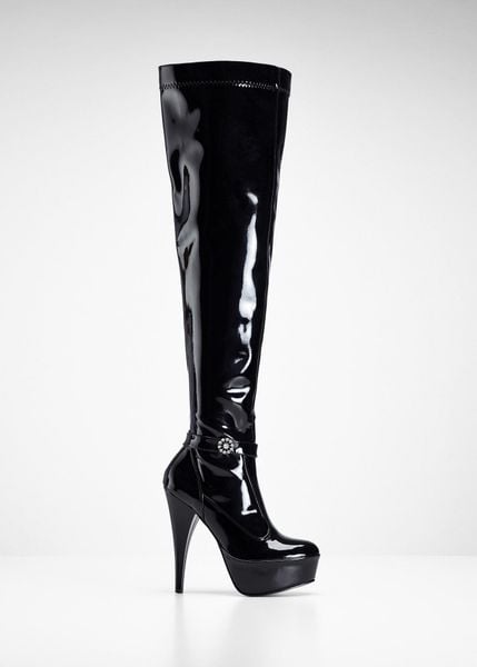 Kozaki lakierowane na platformie o długości nad kolano