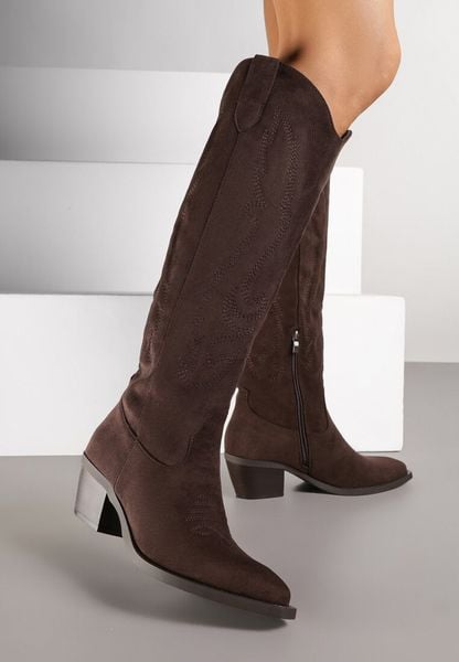 Ciemnobrązowe Kozaki Kowbojki w Klasycznym Stylu z Imitacji Zamszu Lataselia