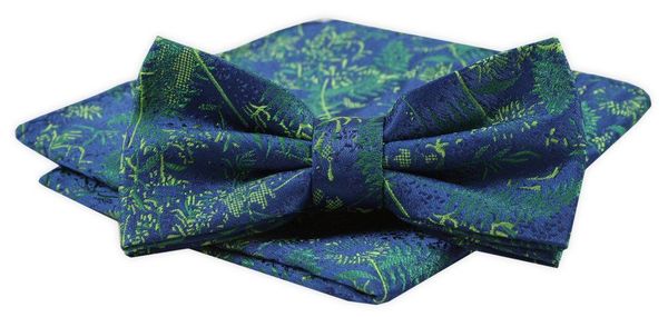 Mucha Męska Alties z Poszetką – Zielona we Wzór