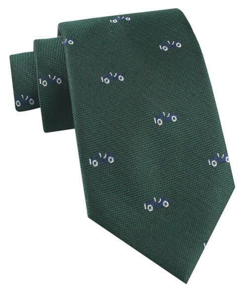 Jedwabny Krawat Męski – His Story – Zielony, Retro-Auto