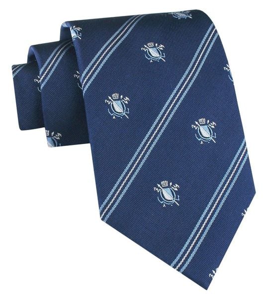 Jedwabny Krawat Męski – His Story – Ciemnoniebieski, Klubowy Wzór