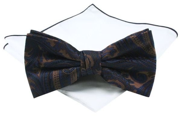 Męska Mucha (Poszetka w Zestawie) – Chattier – Granatowo-Brązowa