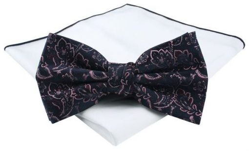 Męska Mucha (Poszetka w Zestawie) – Chattier – Różowy Wzór, Granatowe Tło