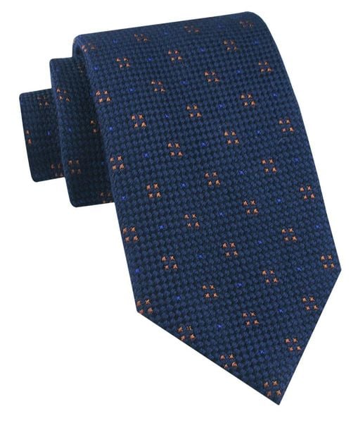 Jedwabno-Wełniany Krawat Męski – His Story – Granat, Pomarańczowe Akcenty