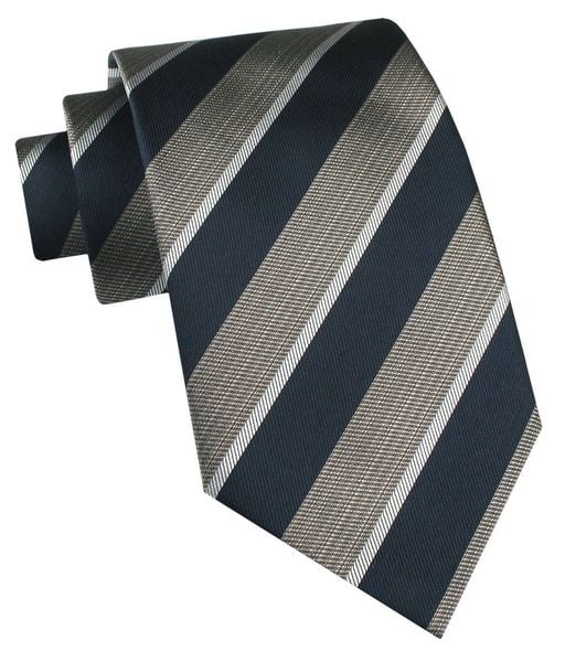 Jedwabny Krawat Męski – His Story – Beż z Granatem, Pasy