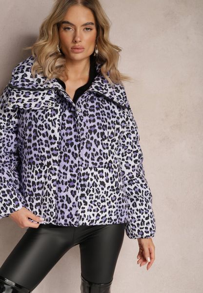 Fioletowa Kurtka w Cętki z Pikowaniem i Kołnierzem Gelasa