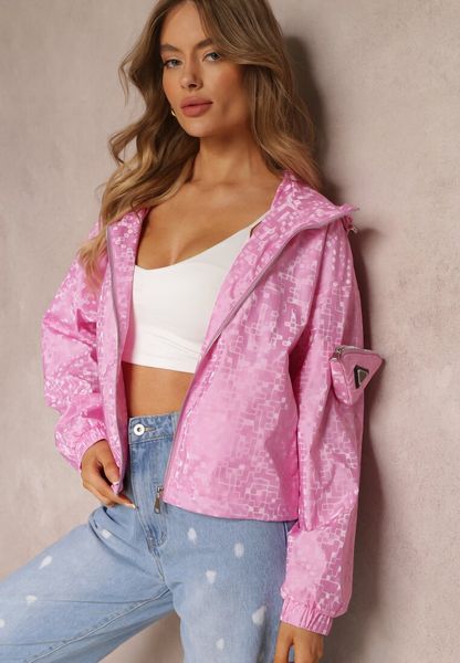 Różowa Kurtka z Zasuwaną Kieszonką na Rękawie i Nieodpinanym Kapturem Evarria