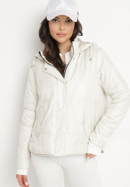Jasnobeżowa Pikowana Kurtka z Wsuwanymi Kieszeniami i Nieodpinanym Kapturem Teoga