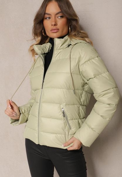 Jasnozielona Kurtka z Odpinanym Kapturem i Pikowanym Przeszyciem Sintheia