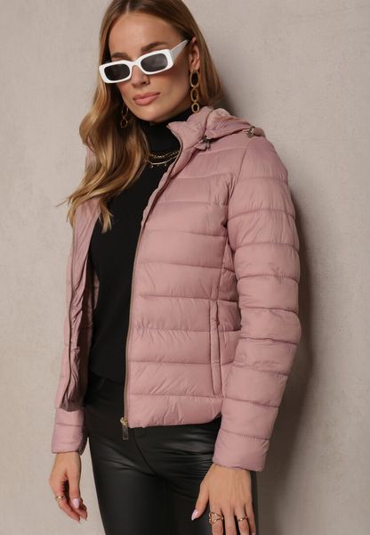 Różowa Przejściowa Kurtka z Odpinanym Kapturem i Pikowaniem Okluma