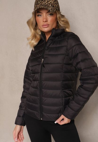 Czarna Casualowa Kurtka Ozdobiona Pikowaniem Nelionea