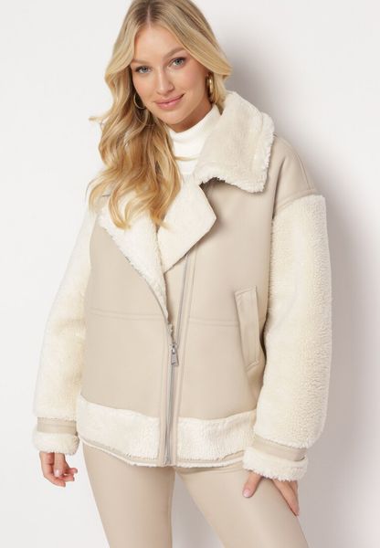 Jasnobeżowa Kurtka Ramoneska z Kożuszkiem Zirara