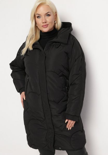 Czarna Pikowana Kurtka z Kapturem Fariana