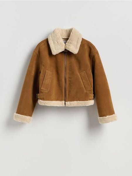Kurtka o regularnym kroju, wykonana z imitacji zamszu.