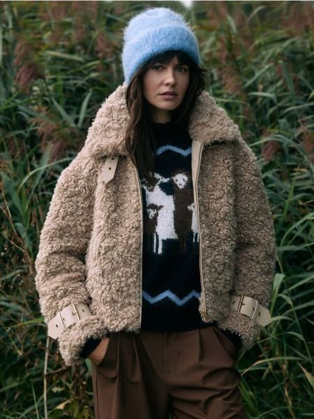 Kurtka o regularnym kroju, wykonana z imitacji baranka.